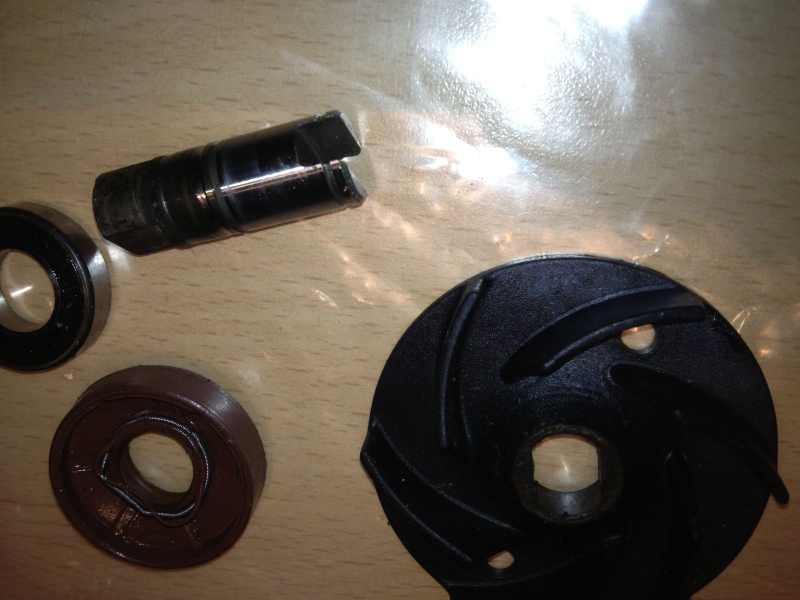 eine "eingelaufene" Wasserpumpenwelle in Betracht ziehen.