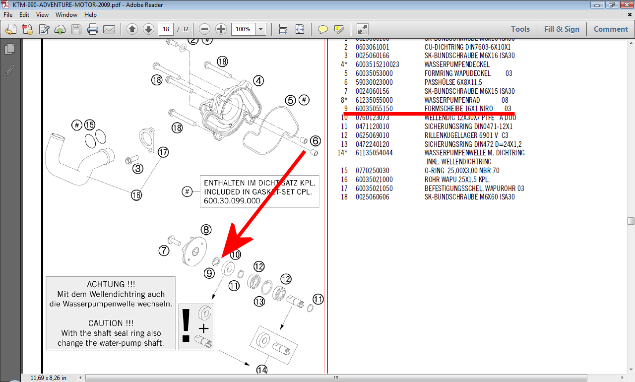 Was bei mir mal war.........bei dem Wechsel der WaPu-Welle (war eingelaufen) wurde beim zusammen bauen eine kleine Beilage vergessen Mad , zwischen dem Wasserpumpenrad und dem Wellendichtring (Zeichnung # 9).