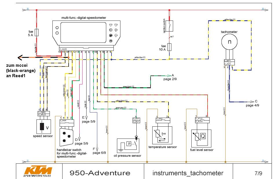 Hierfür muss man nur die Tachosignalleitung (schwarz-orange) des LC8-Kabelbaumes anzapfen und an Reed1 des mccoi anschließen.