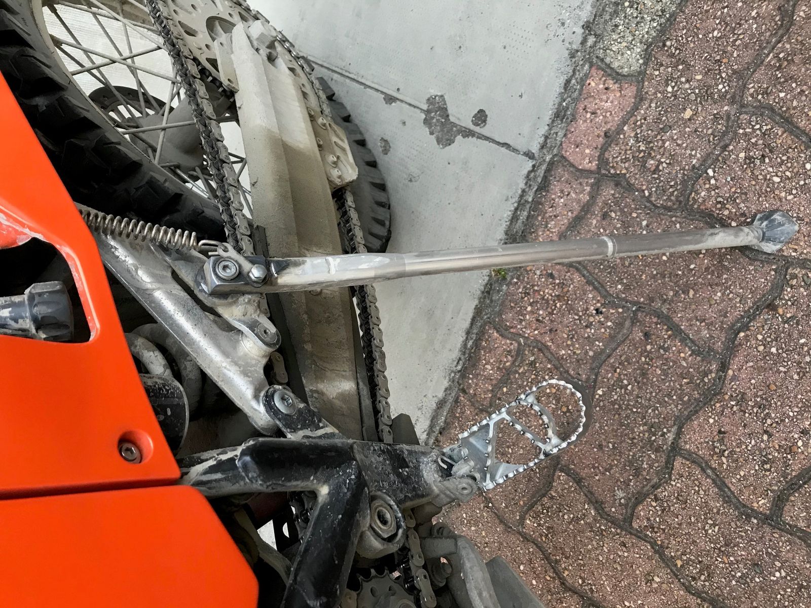 die Horrorstories von gerissenen Gehäusen aufgrund der Fabelleistung der KTM Ingenieure, den Seitenständer direkt im Motorgehäuse zu befestigen, sind hinlänglich bekannt. Nun treibt mich das Thema auch um. Gleichwohl fahre ich nicht häufig mit einem schwerbepackten Motorrad. Aber lieber mit moderatem Aufwand vorbeugen, als nachher dumm aus der Wäsche gucken.
