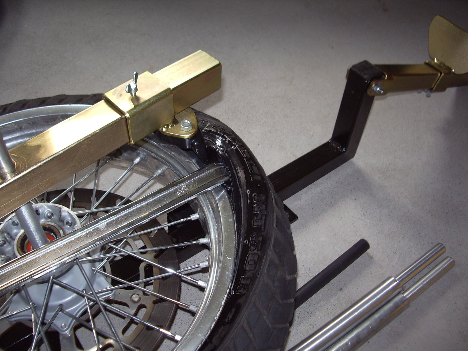 Didi hat, aufgrund eines anderen Forummitglied´s, noch zusätzlich Laschen angeschweißt damit man das Montiergerät auch (z.B.am Boden) festschrauben kann, muss man aber nicht, bei den Test hab ich das Ding auf´n kalten Garagenboden gehabt, Schaden kann´s aber auch nicht.