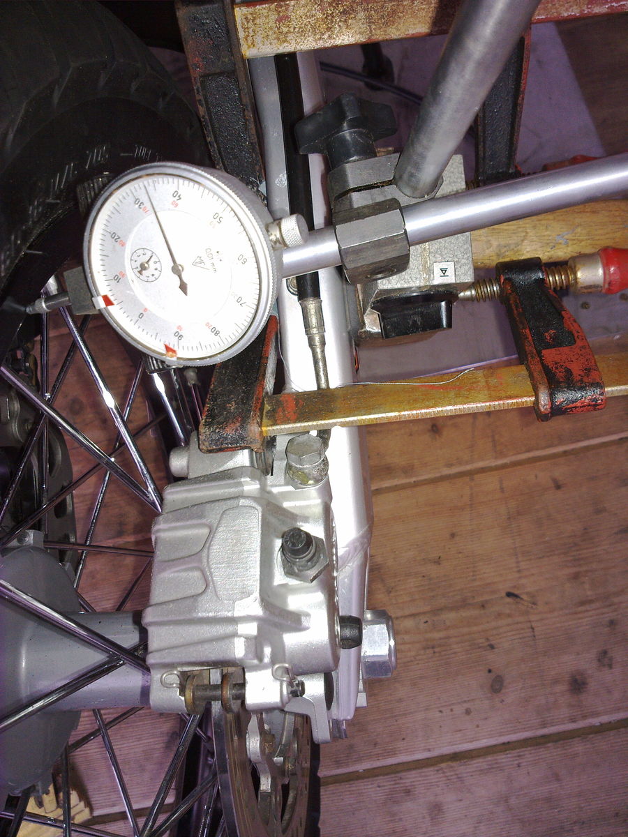 So geht es nicht weiter, ich muss die Felge zentrieren 2 - 3mm Seitenschlag.