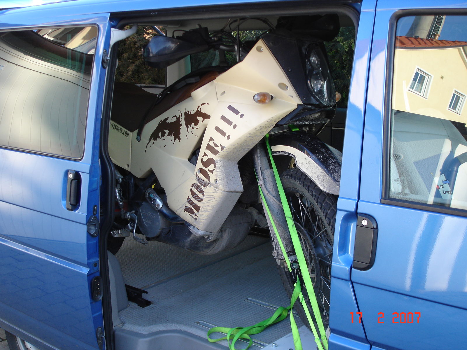 In den T4 Multivan passen 2 950 Adventure ohne Scheibe gut rein.