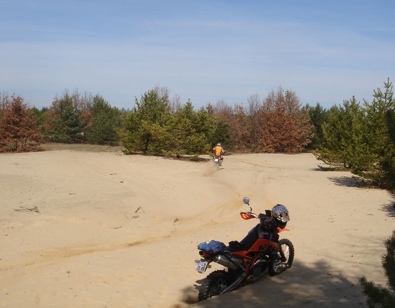 Von Militär und Kontrollen hab ich nix gesehen, aber das Gebiet ist gesperrt. Z.t durch Sandwälle. Die ganze Gegend dort ist ganz witzig zum fahren, weils eben viel Sand hat. Auch die nicht gesperten Wege sind teilweise tiefsandig. Stellenweise kommt dann Truppenübungsgelände. Merkst du z.b an Kratern. Südlich davon sind die kleinen Karpaten. Laubwälder mit ganz guten Auffahrten. Auch dort gabs keine Probleme mit Förstern etc.