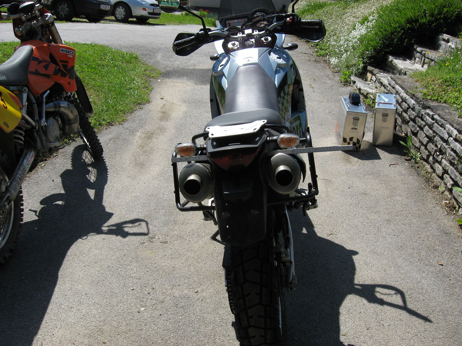 Falls es ausser dem Düringer noch wen interessiert: habe jetzt die 29 Liter Touratech Zega Cases auf Givi Trägern montiert. Koffer sind 18,5 cm breit, die Träger haben einen Durchmesser von ca. 16,5 mm, daher braucht man zu den 15 mm Anbausätzen von Touratech noch 8 Distanzscheiben, also auch 2 Sätze zu je 4 Stück.