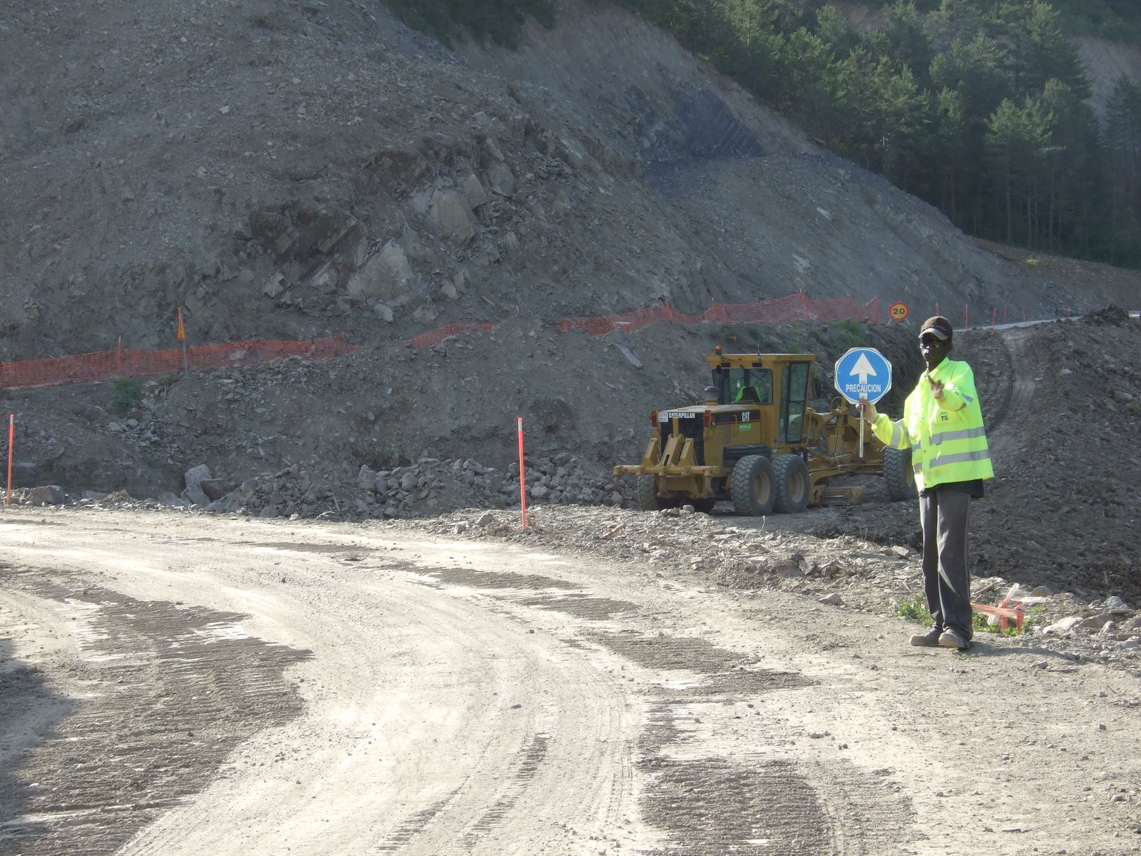 Als es nach einer zeitweilig abgesperrten Unfallstelle (Viertelstunde verwartet) mal wieder zu regnen anfing, suchte ich an einem kleinen überdachten Stand Schutz. Ich dachte, es gäbe, wie so oft, irgendwelche geologischen Informationen für interessierte Kulturtouristen, aber dies hier war dramatischer:
