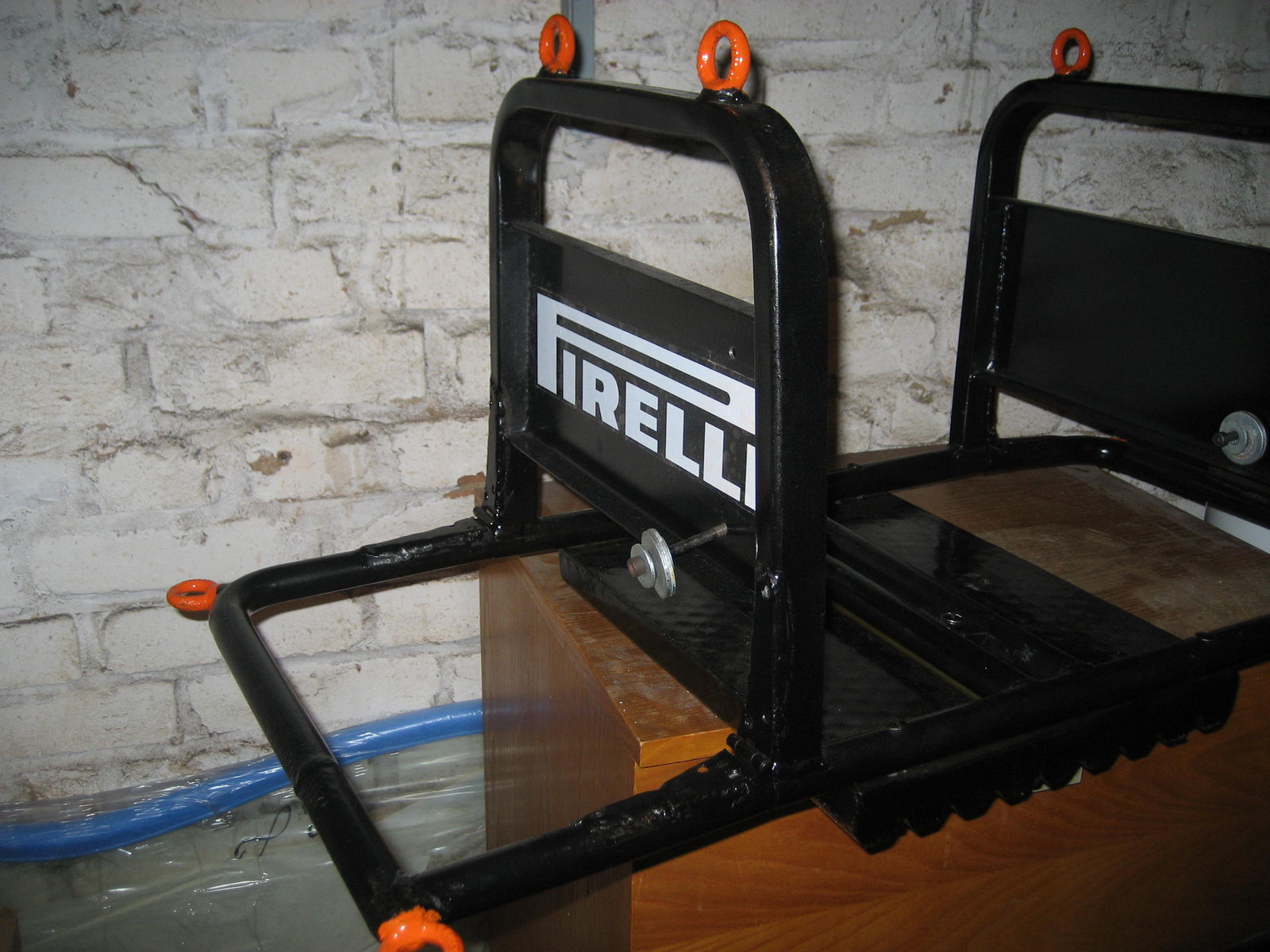 8 Ösen zum Verzurren angebrutzelt und orange gepinselt.Die Halterung mit Platte ist schwarz lackiert