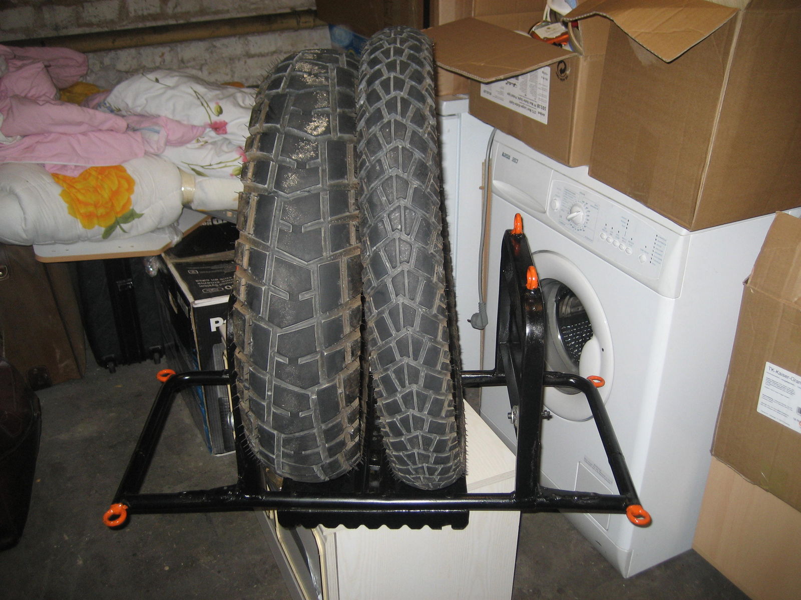 | Schradt @ Sa, 23. Jun 2007, 17:12 hat folgendes geschrieben: | Vorderrad liegt auf nem 2,5cm dicken, mit nem alten Schlauch überzogenen Brett auf der Givi Topcaseträgerplatte.