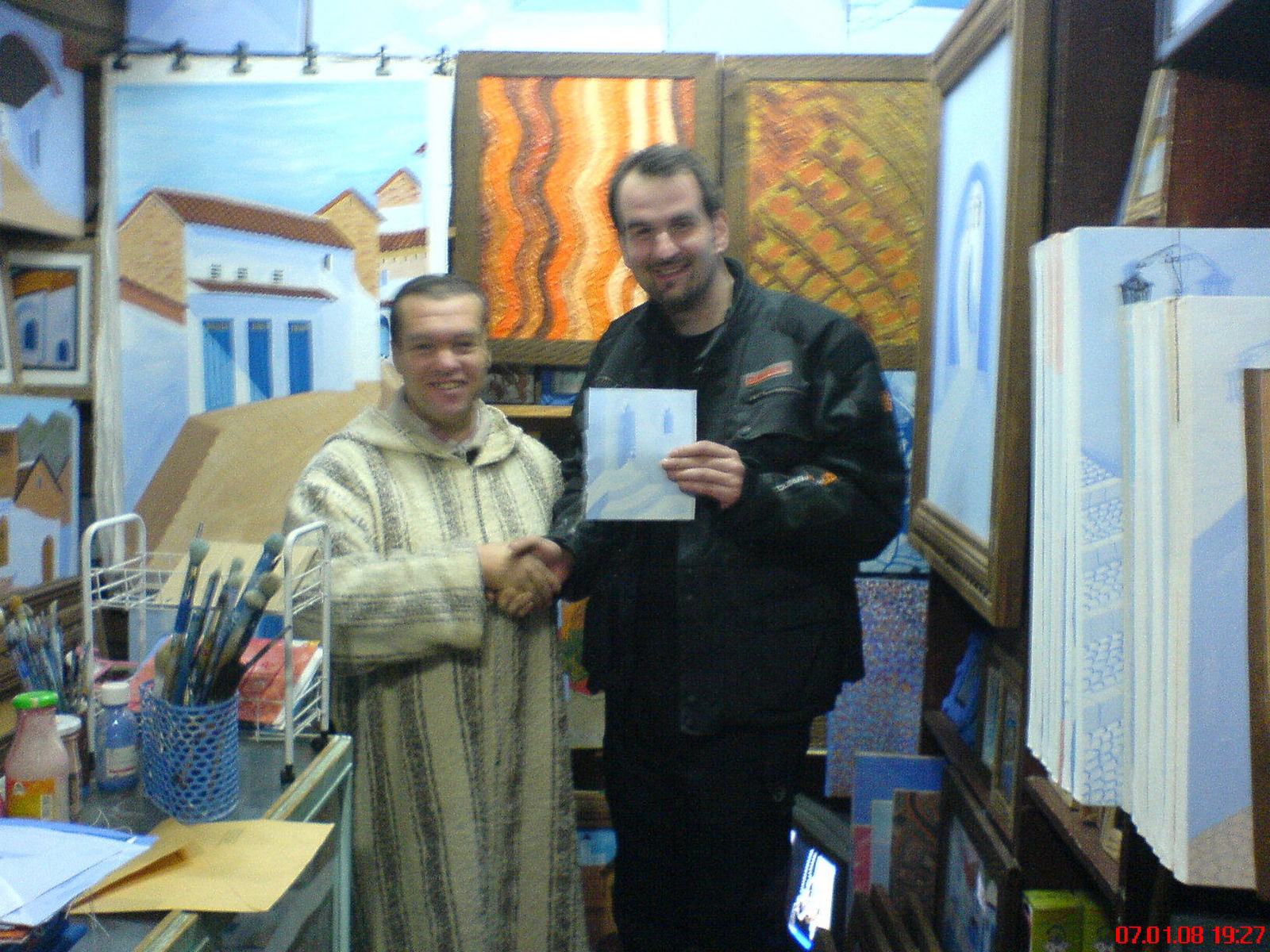 Das was es auf dem Stück bis Tetouan zu sehen gab, brachte uns verwöhnten mitteleuropäischen Neulingen einen Kulturschock und nahezu zum sofortigen Umkehren (osteurop. Verhälnisse sind uns durchaus bekannt ! ). Wilde Bauwut überall: Die Baustellensicherung der Schnellstrasse bestand aus Feldsteinen, die vorort mit weißer Farbe überschüttet waren, im Straßengraben weilten verschleierte Frauen mit Unmengen Gepäckbergen, Müll, Lärm, Dreck und Fahrzeuge, die hier nichtmal der Autoverwerter haben will. Unrasierte Männer ohne Zähne in Kapuzengewändern, die einem Haschisch anbieten, wenn man nur Schritttempo fährt. Angst überhaupt anzuhalten, weil man noch nicht einschätzen konnte ob es gefährlich oder normal ist. Liegengebliebene Engländer mit BMW-Motorrad versucht zu helfen. Unzählige Polizeikontrollen mit Nagelgurten auf der Strasse passiert. Unbeschreibliches. Angst.