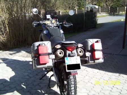 Hier sind die versprochenen Bilder von den Koffern mit angeschnallten Reservekanistern. Bewähren muss sich das ganze ab 24.4. - dann geht´s gen CZ, SK, H, HR und SLO...