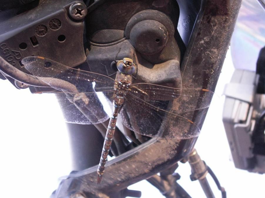 Zerplatzt sind die Wanderheuschrecken übrigens schleimgrün. Passt auch zum Orange.