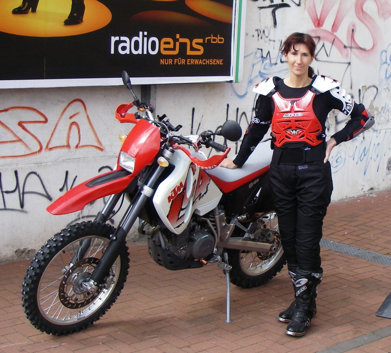 Vielleicht kann ich Euch da etwas helfen mit den Erfahrungen, die ich gemacht habe. Den Panzer, von dem hier geredet wurde, hatte ich vor 2 Tagen mal anprobiert mit dem Ergebnis: Er sitzt gar nicht, zu klein, zu kurz ( ich bin 1,72m), an den Seiten ist nur ein Kleinstverschluß als Rippenschutz, der auch noch zu hoch unter den Achseln angebracht wurde. Der Panzer liegt direkt auf den Schultern auf, ohne Distanz. Empfehlen würde ich ihn auf keinen Fall. Ich besitze das Vorgängermodell von Acerbis Fusion Lady mit vernünftiger Größe und eben an den Rippen mit Schutz in akzeptabler Größe, damit nicht beim Stürzen die Ellbogenprotektoren für kleine Rippchen sorgen können. Die Schultern sind schön gepolstert und insgesamt läßt er weibliche Formen zu, was ja bei den Mädchensachen nicht unbedingt zum Standard gehört. Drunter zieh ich lange Funktionsunterwäsche -in schwarz- da bin ich dann bei Hitze auch schon mal nur mit Shirt, Panzer und Ellbogenprotektoren heimgefahren, weil es so am luftigsten war und besser zum Aushalten. Unter der Crosshose trage ich seit kurzem eine Art "Radfahrerunterhose", nämlich von ONeal die Protector Shorts mit "Seitenaufprallschutz." Nach einem Sturz hatte ich mal eine Woche eine blau verzierte Prellung an der Hüfte wacko und nun bin ich dort auch noch besser geschützt. Das Teil hat auch noch ein Polster am Steißbein. Dann gehören natürlich noch Knieprotektoren zur Anzugsordnung, ist ja klar.