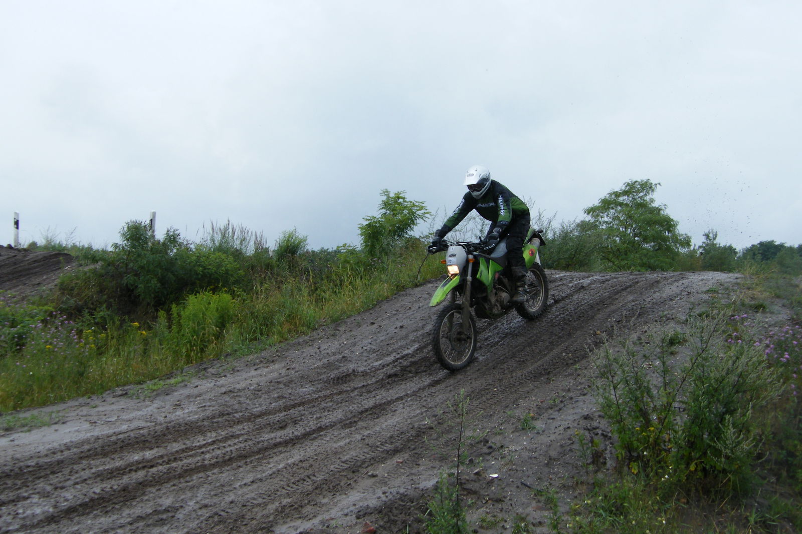 Am Sonnabend war die Piste noch relativ trocken. Dann kam der große Regen, und die ganze Endurostrecke verwandelte sich in ein riesiges Matschmeer. wub Das Sonntagstraining war eine Schlammschlacht vom Feinsten. Stundenlang durch die Schei.. pflügen mit gelegentlichen Geschmacksproben durch Schwerkraftattacken. wub Fotos werden nachgeliefert, sind schon bestellt.