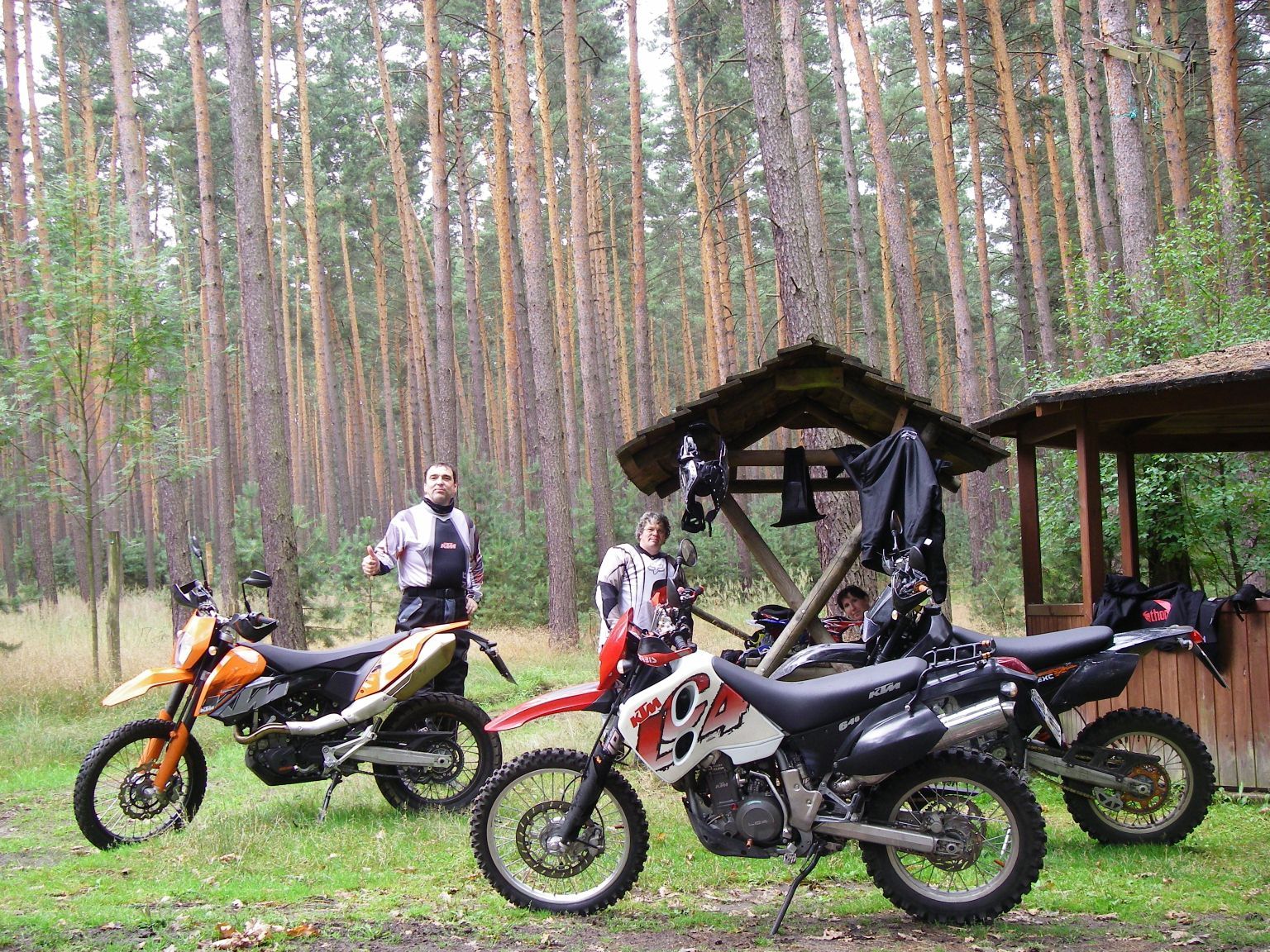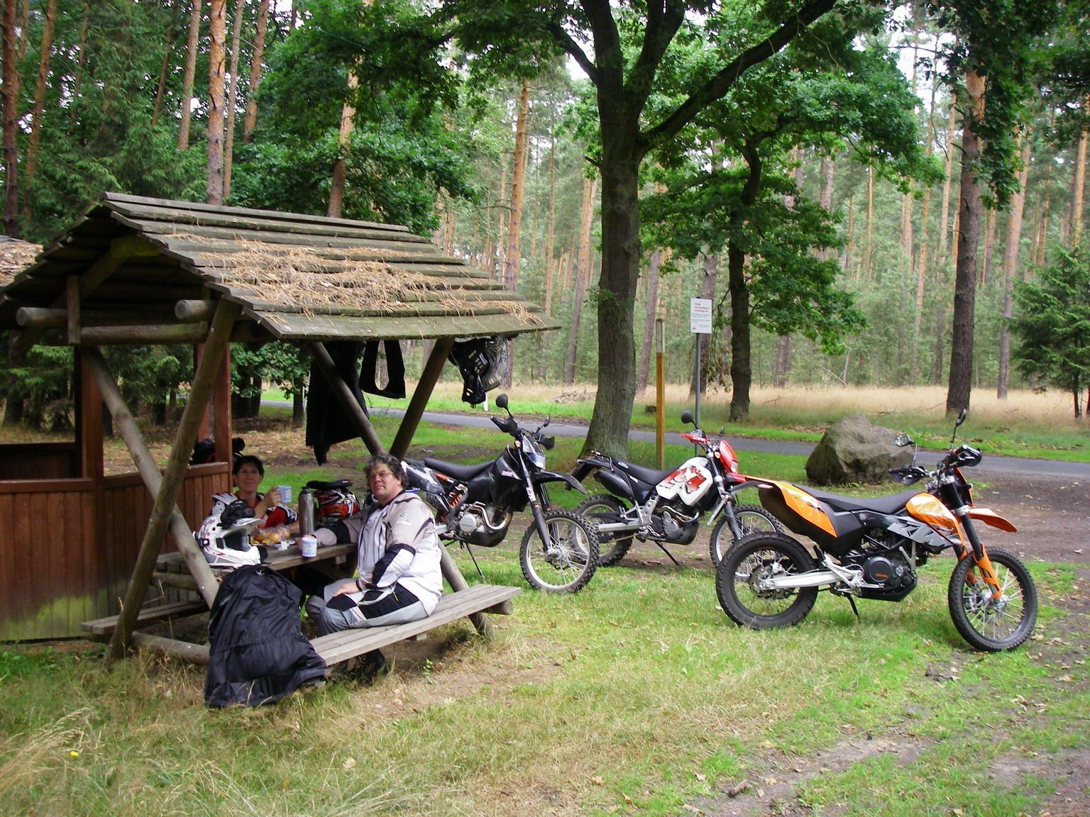 So, heute waren knapp 100 km regenschwerer Tiefsand und vermatschte Waldtracks rund um Altes Lager dran. Der Christian ist mit "meiner" 690 E gefahren. Er ist super mit dem Moped zurecht gekommen. Das sah sehr geschmeidig aus. Die ganze Offroad-Strecke ist er mit abgefahrenen Enduro 3 locker vor mir her gesurft. Mit Stollen drauf wäre er mir mit Sicherheit weggeflogen. Christian ist 1,67 m groß. Für ihn passt die Ergonomie der 690 E genial! Cool