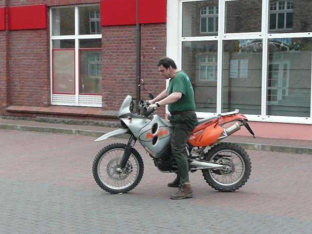 Willkommen in der wunderbaren Welt der Geländerollerfahrer! Dank des fleißigen Rübenbauers ist auch bei Dir endlich Schluß mt dem ewigen Schrankdienst, mein Sohn. Vielleicht werden wir im nächsten Jahr in Grimme noch nicht die Mehrheit stellen, aber wir werden viel entspannter ankommen, als die Fahrer der handgekuppelten Klassik-Enduros.  |