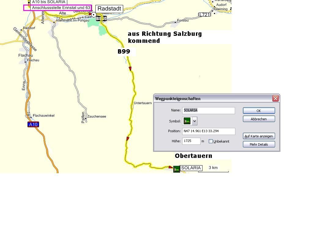 Und wenn man von Süden => Villach aus kommt an der "Anschlussstelle Rennweg" ab auf die B99 über den Katschberg nach Obertauern zum Chris.