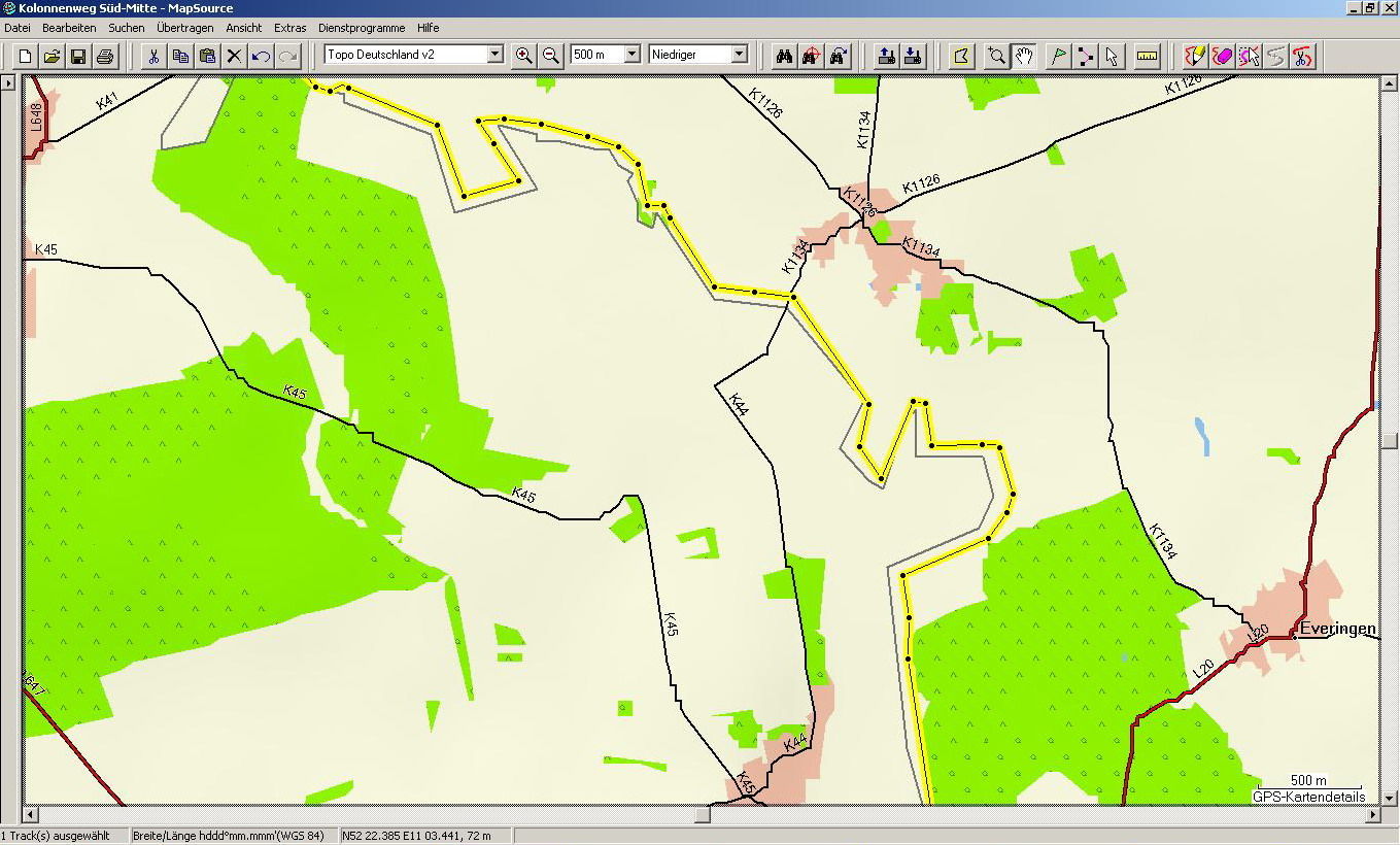 gute Arbeit das ! Liegt auch auf der Topo V2 immer schön östlich der eingezeichneten Grenze. Kläre mich bitte mal auf, wie Du Punkte oder Tracks aus Google rausbekommst und in MS einbindest. Klappt bei mir bisher nur umgekehrt.