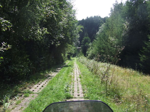 Hab mich heute mal praktisch mit dem Thema "Kolonnenweg" beschäftigt, d.h. ich bin 7 km (langsame Fahrt / 20 min) auf dem besagten gefahren. Recht schnell bekam ich Zweifel, ob wirklich jemand von Sachsen bis MeckPomm auf diesen Platten fahren will, egal ob fein- oder grob gelocht. bzw. quer gelegte "Betonbalken", es machte einfach keinen Spaß. Ok, das Panorama und die Walddurchfahrt brachte etwas Aufheiterung. Das ZUMO war übrigens vorab auch nicht in der Lage, über den KWeg zu routen. Erst als ich drauf war, entschied es sich, meinem Vorhaben nachzugeben.