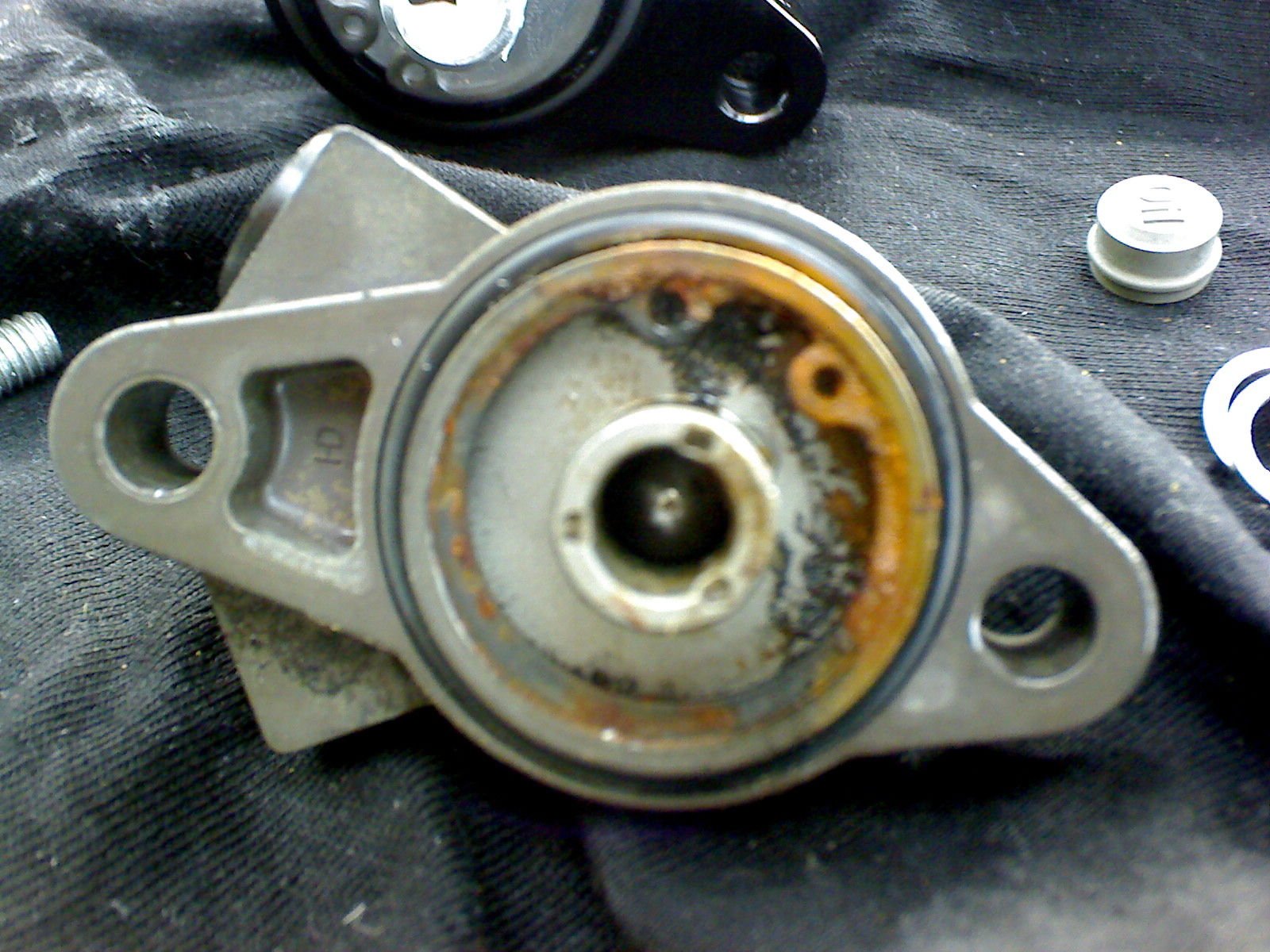 Die eindringende Feuchtigkeit ist auch nicht förderlich für die Haltbarkeit des O-Rings: auf die Dauer (Standzeiten) verwandelt sich brav schönes neues Eisen in schmiergelnden Rost und schon ist der O-Ring dahin. Weiterer Beweis für eindringende Feuchtigkeit: Rostspuren an der Nut des Segerings. Ein defekter O-Ring und damit Verlust des Kupplungsdrucks könnte daher auch ohne Abrieb am KNZ (wie bei mir) vorkommen.