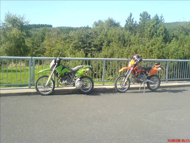 sieht ja richtig gut aus auf den Pic's. Bei uns war es auch sehr schon. Haben Frank und Steffi bis an die Grenze begleidet. Laughing Ein bischen den Kolonnenweg abgefahren und dann an der A72 entlang so gut wie es ging Offroad gefahren und da ging einiges. Mit ein paar schönen Singeltrial's Schotter und Waldwegen bis hin zu höhentauglichen Wanderweg (0,5-1,0m Fahrbreite ca. 150 m ging's dann auf der rechten Seite steil bergab Auf einer Länge von 6 km) Holger für seine Verhältnisse ist richtig gut mitgefahren.