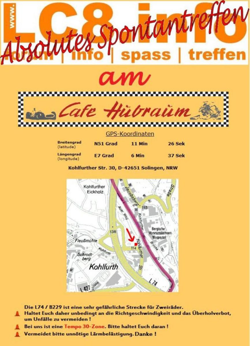 Die ANFAHRT zum Cafe Hubraum findet Ihr HIER.