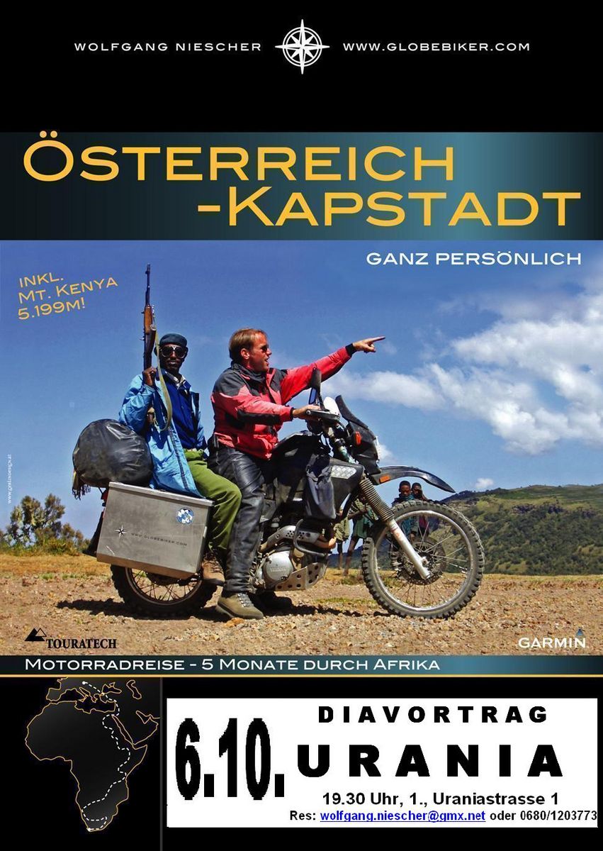 Verfasst am : Do, 2. Okt 2008, 12:08 Titel: Motorradreise Wien - Kapstadt, Diavortrag Urania