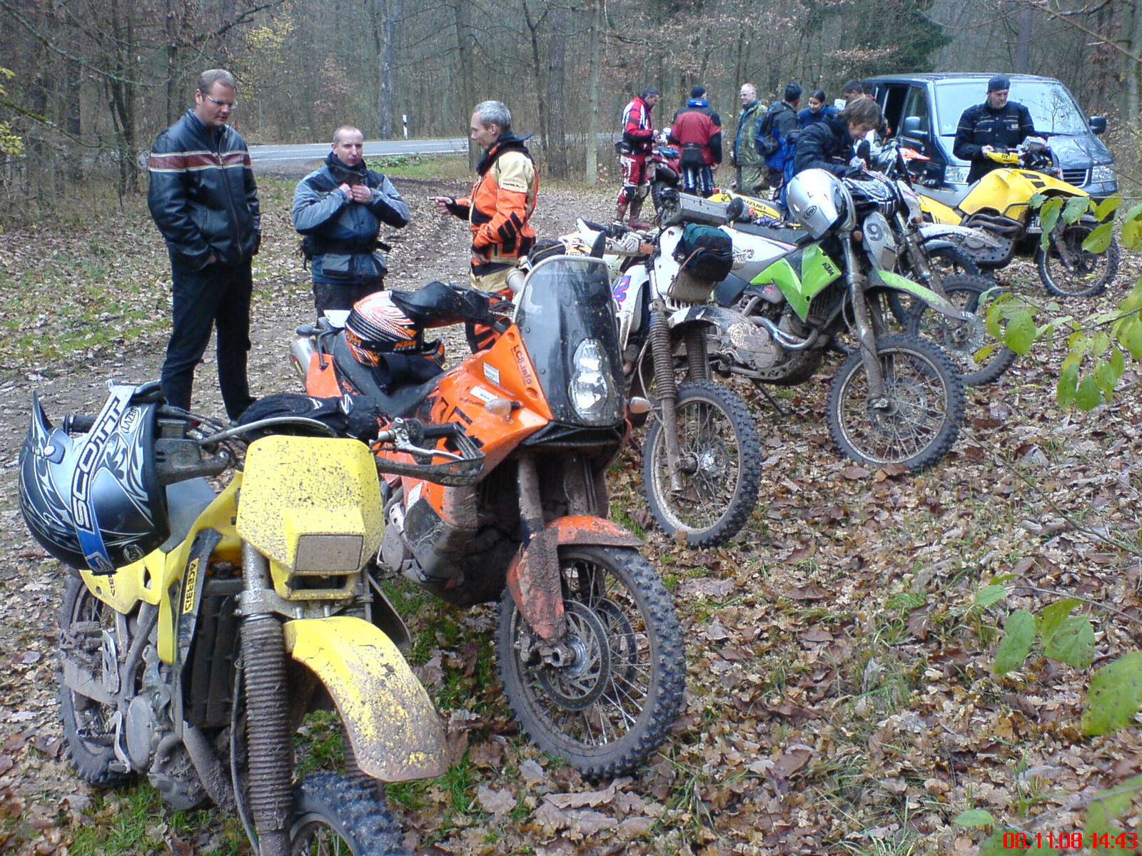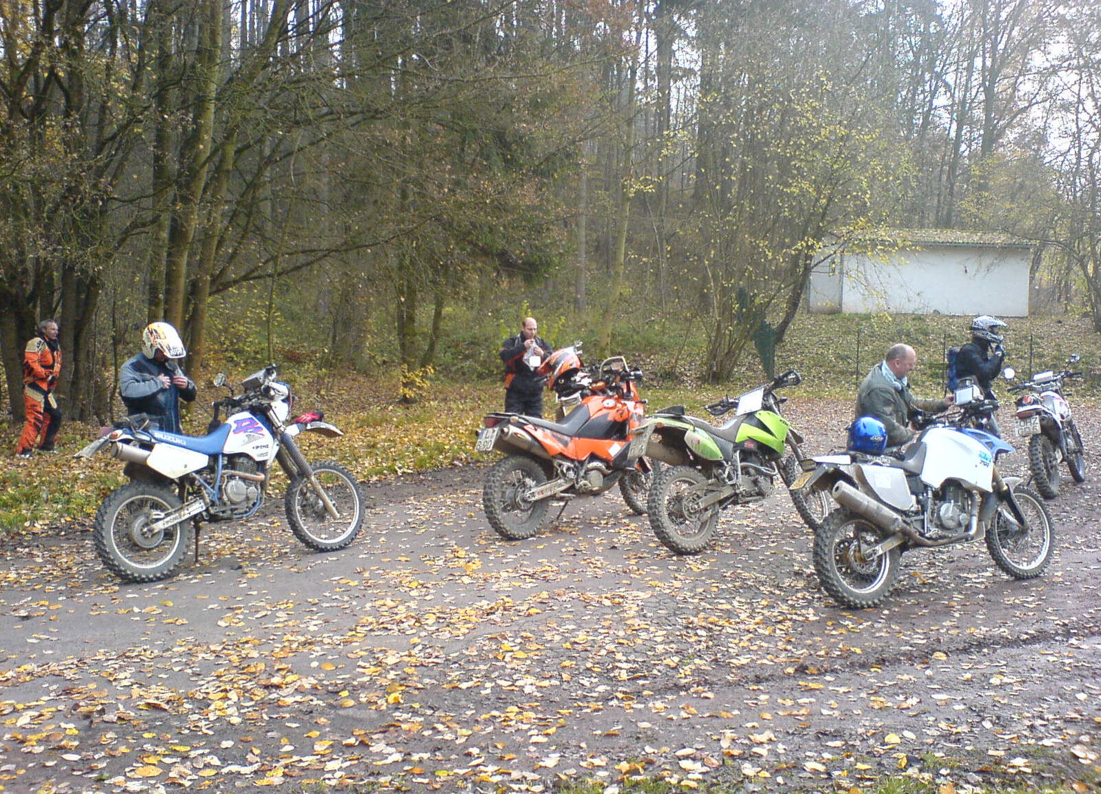 Danke, Danke ich wills mal so formulieren: ich hab auch mal Glück gehabt. Am Freitag gings nach der Arbeit auf nach Thüringen, wo ich noch nicht so richtig wusste, was mich erwartet. Die Superelcevier wurde zur Rallyemaschine umgebaut, indem ich den Spiegel abmachte, als Roadbookhalter diente eine Klarsichtbewerbungsmappe die mit Gewebeklebeband an die Lenkerstrebe getapt wurde, hat bis zum Schluss funktioniert. Orientierungsfahrten auf der Strasse habe ich ja schon gemacht. Fast alle anderen kamen mit Transporter oder Hänger.