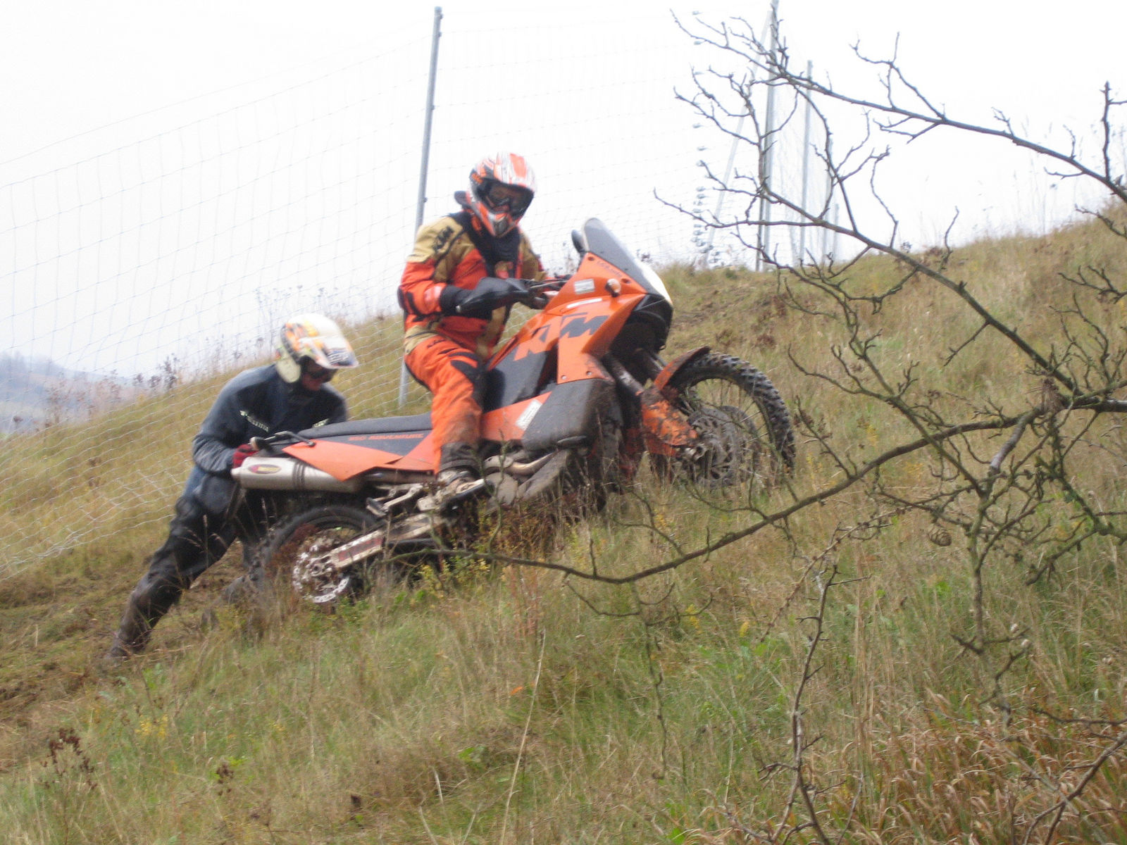 Während die anderen Ihre Roadbooks zusammenlebten machte ich Fotos und mir so meine Gedanken. Beim Prolog klappte der Seitenständer nich rein, aber ich kam ganz gut durch. Nach dem Start kamen wir als erstes in eine Polizeikontrolle, mir wurde nach der Anweisung das Kennzeichen sauber zu machen Gute Fahrt gewünscht, während der arme Thomas 35 € berappen musste. Später fuhr er vor mir einen ordentlichen Steilhang sauber hinauf und kurz danach stürzte er auf der Strasse. Der Daniel und der Henry nahmen mich mit, nachdem alles geklärt war. Ich war ständig am Limit, um den beiden folgen zu können, konnte dabei aber sehr gut lernen. Ich gab mir die größte Mühe die Strecke auf dem Roadbook mit zuverfolgen, mußte aber gelegentlich gleich 2 Seiten umblättern. Ohne Sturz gings so bis ins Ziel, lediglich beim Anhalten im Dunklen bin ich einmal ins leere getreten und umgefallen. Den zweiten Platz habe ich im Wesentlichen dem Können und der Ausrüstung meiner beiden Mitstreitern zu verdanken und weil der Henry einen Buchstaben beim Aufschreiben verschusselt hat.