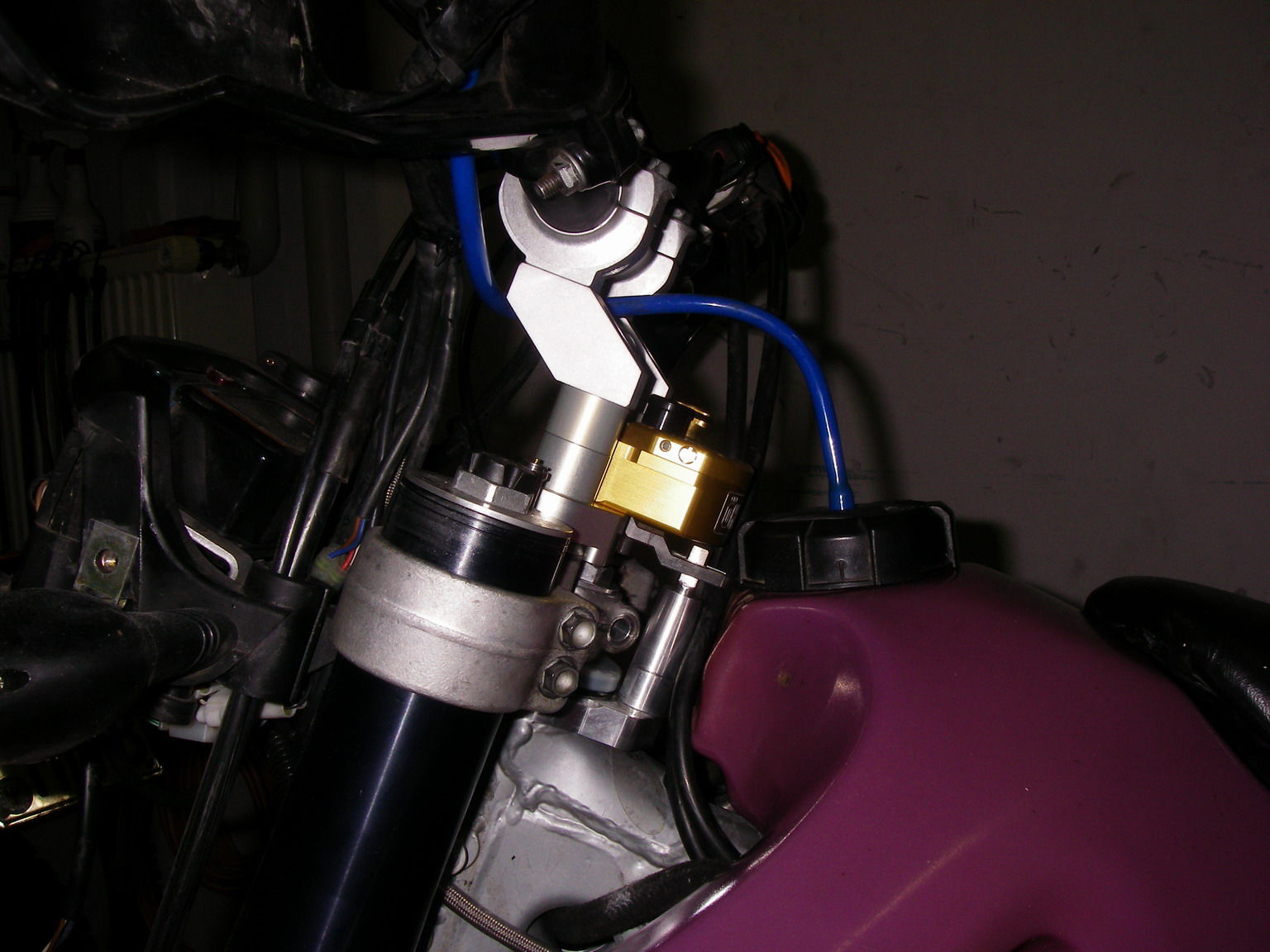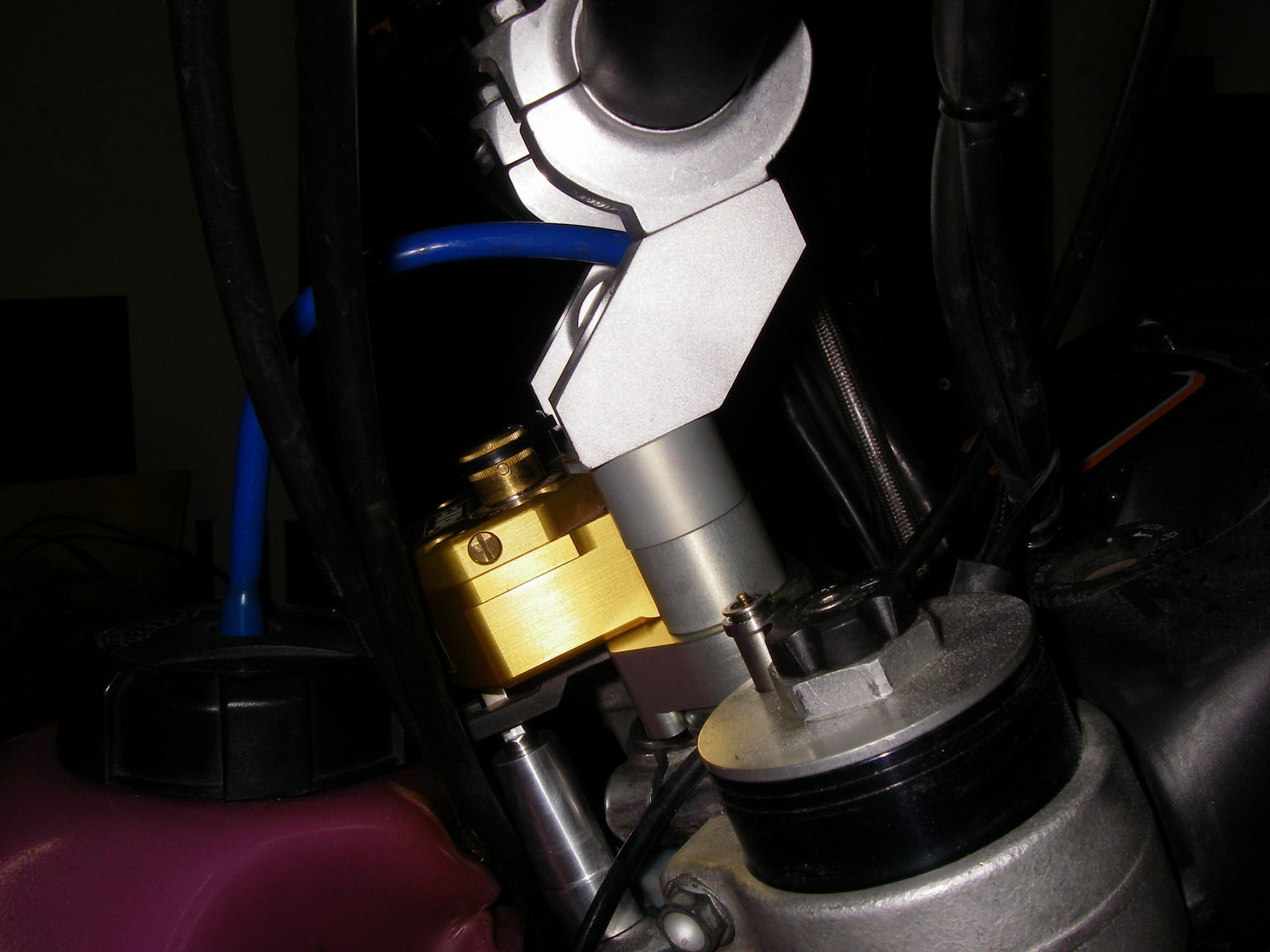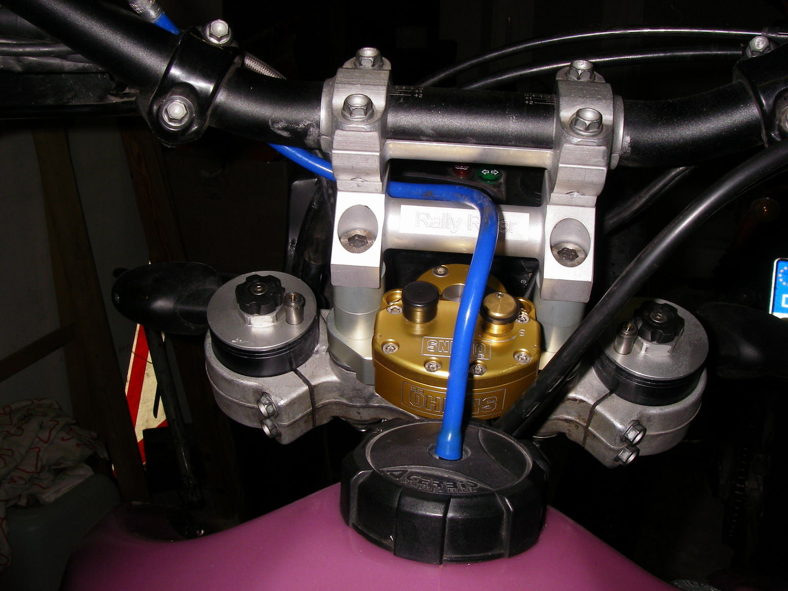 Die Hülse unter dem Riser ist geteilt, weil es sie nur mit einer Höhe von 17mm gibt. Ist von der 660 Rally. Und einmal 17mm waren mir zu niedrig. Wenn der Fräser mal wieder am Fräsen ist, werde uch das Noch ändern lassen.