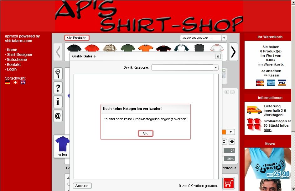 Hm, irgendwie ist der Shört-Shop defekt, die Motive und Grafiken sind wech,