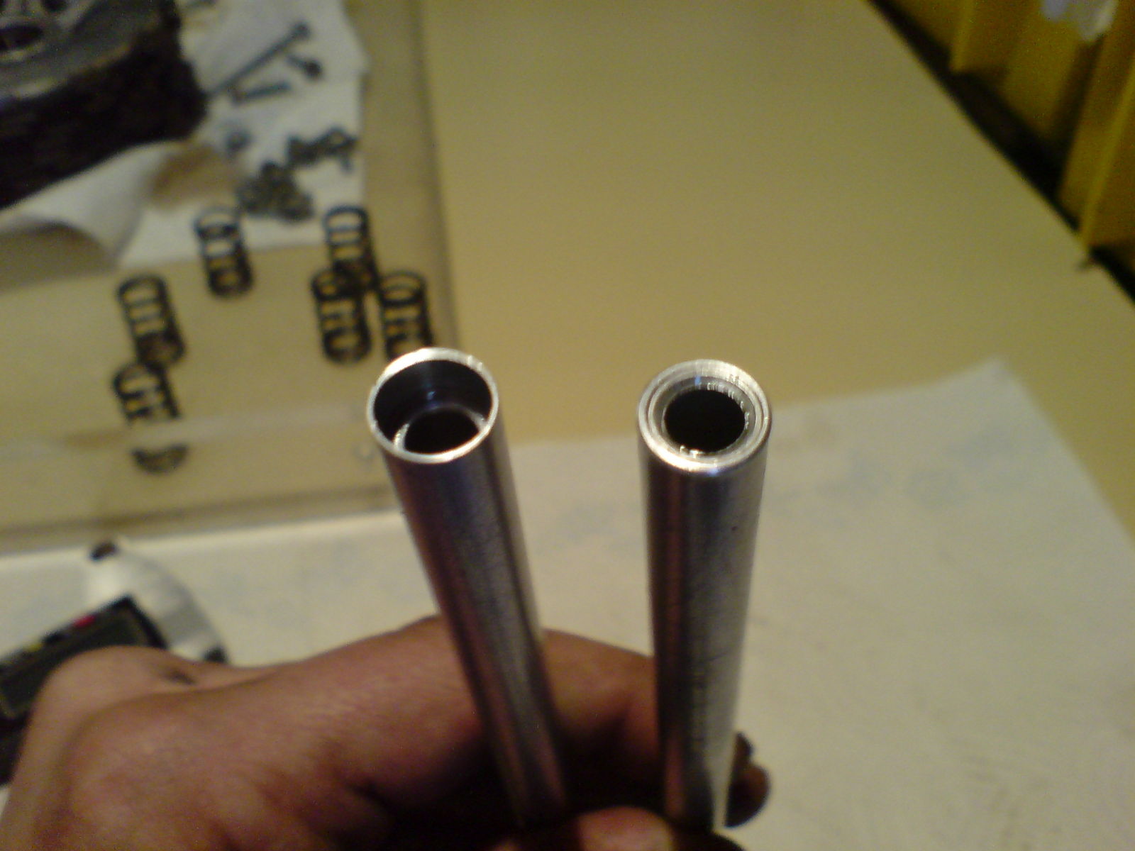 Wie man auf den Bildern sieht, ist die Druckstange also auf 2 Seiten eingelaufen. Das eine Bild ist Motorseite links, dass andere Motorseite rechts.
