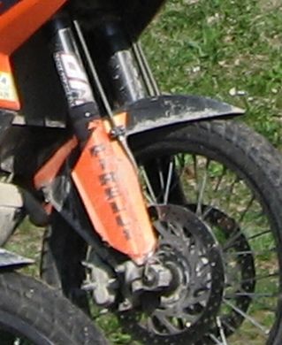 Befestigen ohne den Koti zu "beschädigen" wird wohl nix aber so würde ich keinen Meter fahren. Die Bremsleitung muß ja beim einfedern zwangsläufig die Bremsscheibe berühren