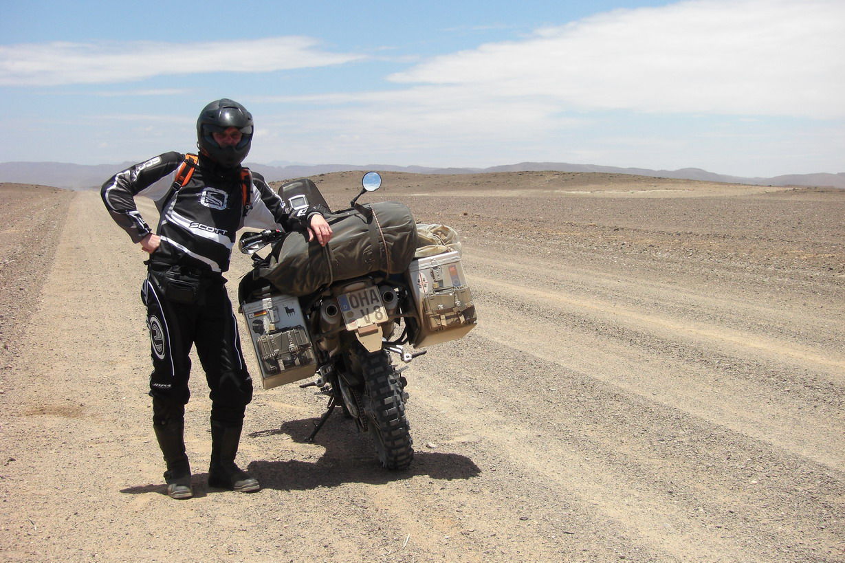An eine Reiseenduro gehören Alubüchsen evtl. eine kleine Hecktasche bzw. Tankrucksack. Für die Helme hab ich immer ein Drahtschloß dabei - da ist noch nie was weggekommen. Laughing