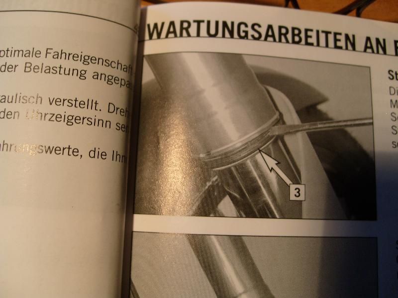 Anyhow, jedenfalls ist jetzt Ruhe aus dem Gabelbereich. Leider mußte ich Fummler genau schauen, was es mit dem großen Federring überhalb der Manschette an sich hatte. Der war aber nun so verbogen, dass er nicht mehr in der Nut hielt. BIEGEARBEITEN , jetzt hält er wieder, aber sitzt natürlich nicht mehr so satt in der Nut. FRAGE:was macht dat Dingen?