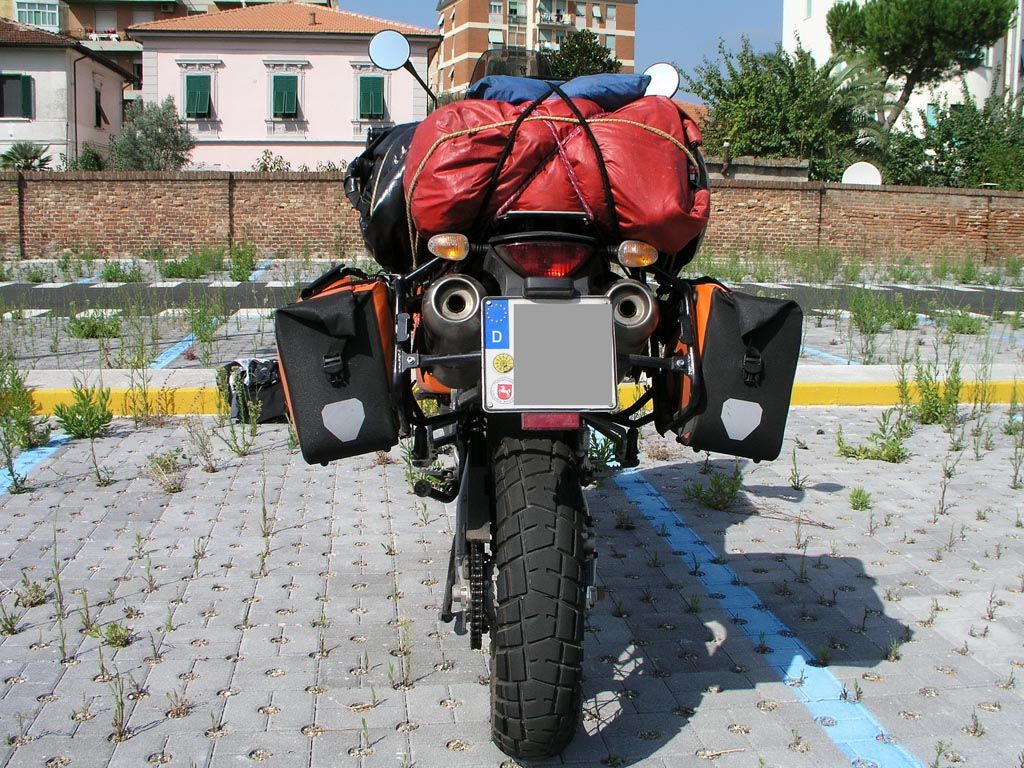 Übrigens, Touratech hat eine gute und größere Heckplatte aus Alu. Da gibt es keine Probleme mit einer Packtasche, die evtl lasch wird auf der original Heckplatte...