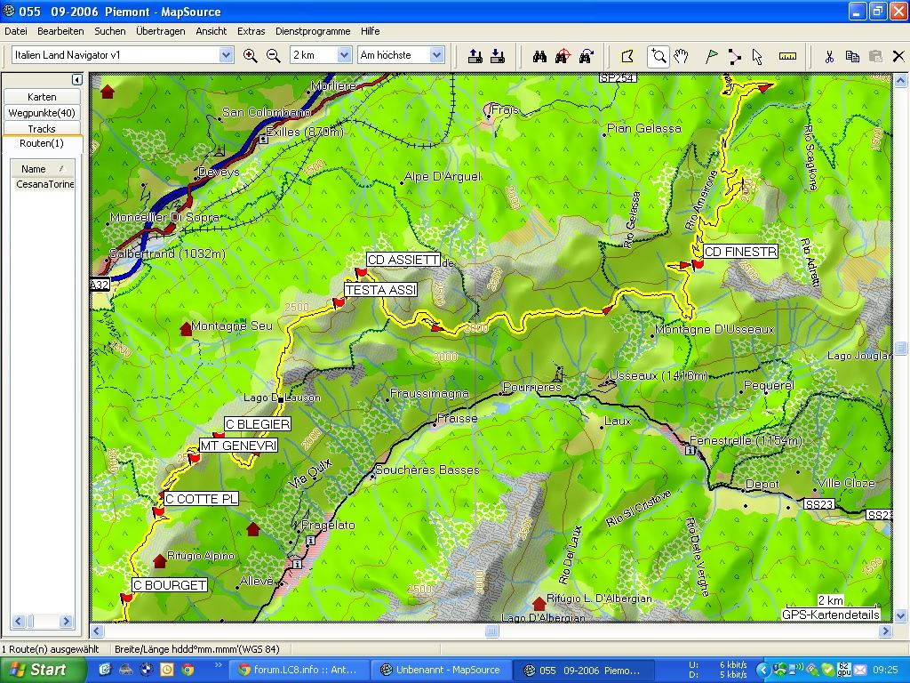 Korrektur: auf meinem Rechner wird über die Assietta (auto)geroutet. MapSource und Italien Land Navigator V1. |