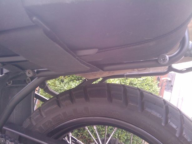 Also vom Endtopf zum Trägerrahmen habe ich an der engsten Stelle noch 2 cm Abstand. Zu den Taschen also 2cm + Rohrstärke.