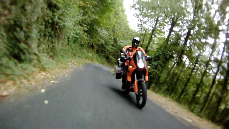 für die sicht nach hinten habe ich zwei dinge ausprobiert. einmal die kamera am helm rückwärts ausgerichtet. zum andern die kamera am alukoffer der bmw montiert -> da die alukoffer aber doch ziemlich vibrieren sind diese aufnahmen doch etwas verwackelt (siehe die aufnahmen, wo man meine ktm im bild sieht). mein fazit nach etlichen versuchen: direkt am motorrad befestigte kamera ermöglich zwar sehr interessante perspektiven wird aber leider immer vibrieren und liefert eher verwackelte/zittrige bilder.