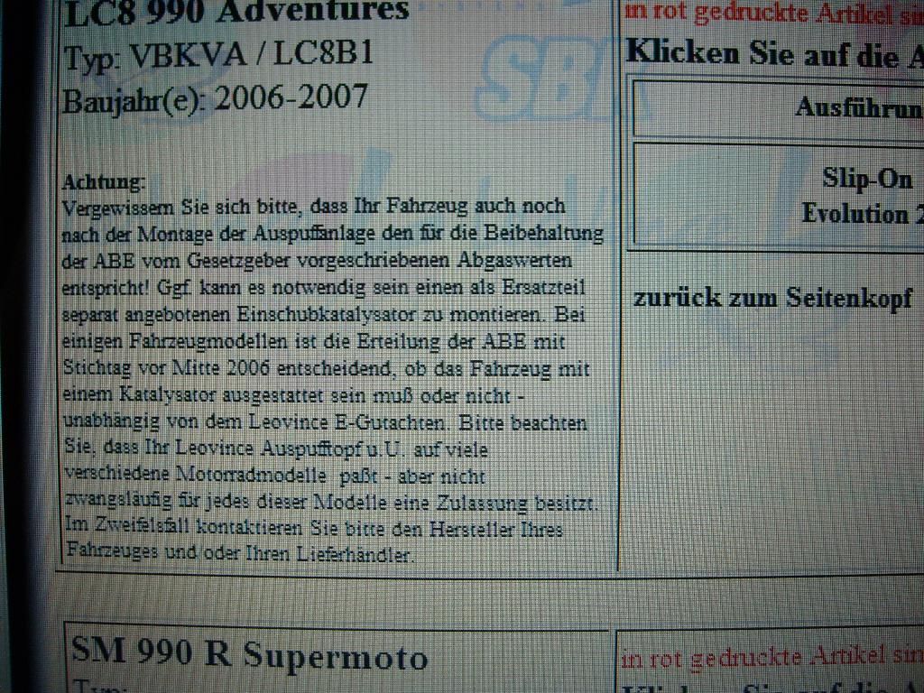 In kurzen Worten, so wie ich es verstanden habe: Wenn bereits orginal ein Kat im Auspuff verbaut ist (betrifft also nur die Einspritzer!), soll/muß auch ein Zubehör-Auspuff einen Kat haben, trotz der ggf erteilten EG-ABE für das gute Stück (paßt zur INFO die LeoVince auf seiner Web Side gegeben hat!).