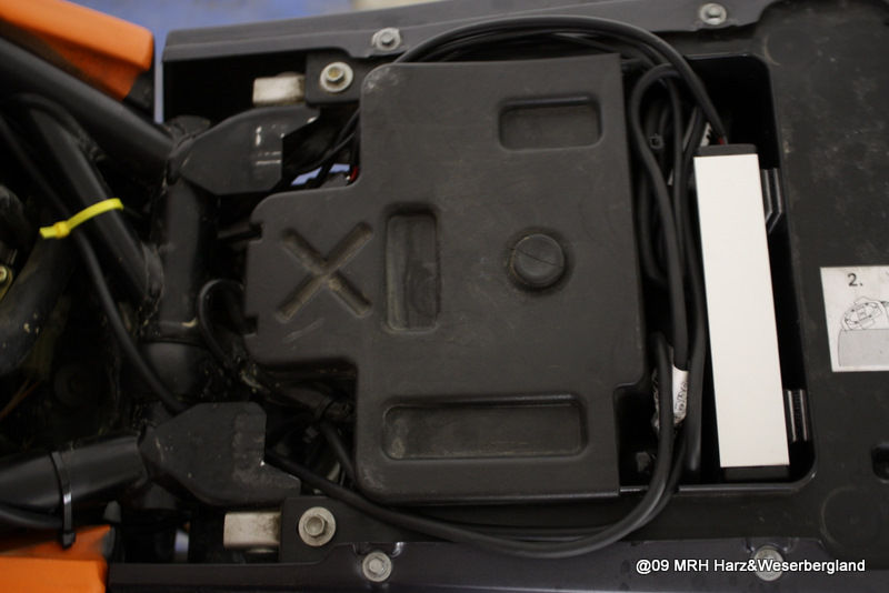 Der Einbau inkl. Tests hat ca. 90 min gedauert. Die Platzierung der Box seht ihr auf dem Foto. Da ich die Erde direkt an die Batterie gelegt habe, musste ich die rechte Tankhälfte "lösen". Das Plus legte ich nach vorn auf die 12V/Zündung. Mit einem Dremel kurz ein kleines Stück aus dem Rand des Werkzeugfaches schneiden und die Kabelage konnte verlegt werden. Den Anschluß für das Headset habe ich einfach unter die Sitzbank gelegt. Vielleicht werde ich mir hier noch eine Buchse für das Tankfach basteln. Bin mir da mit der Feuchtigkeit noch nicht so sicher.