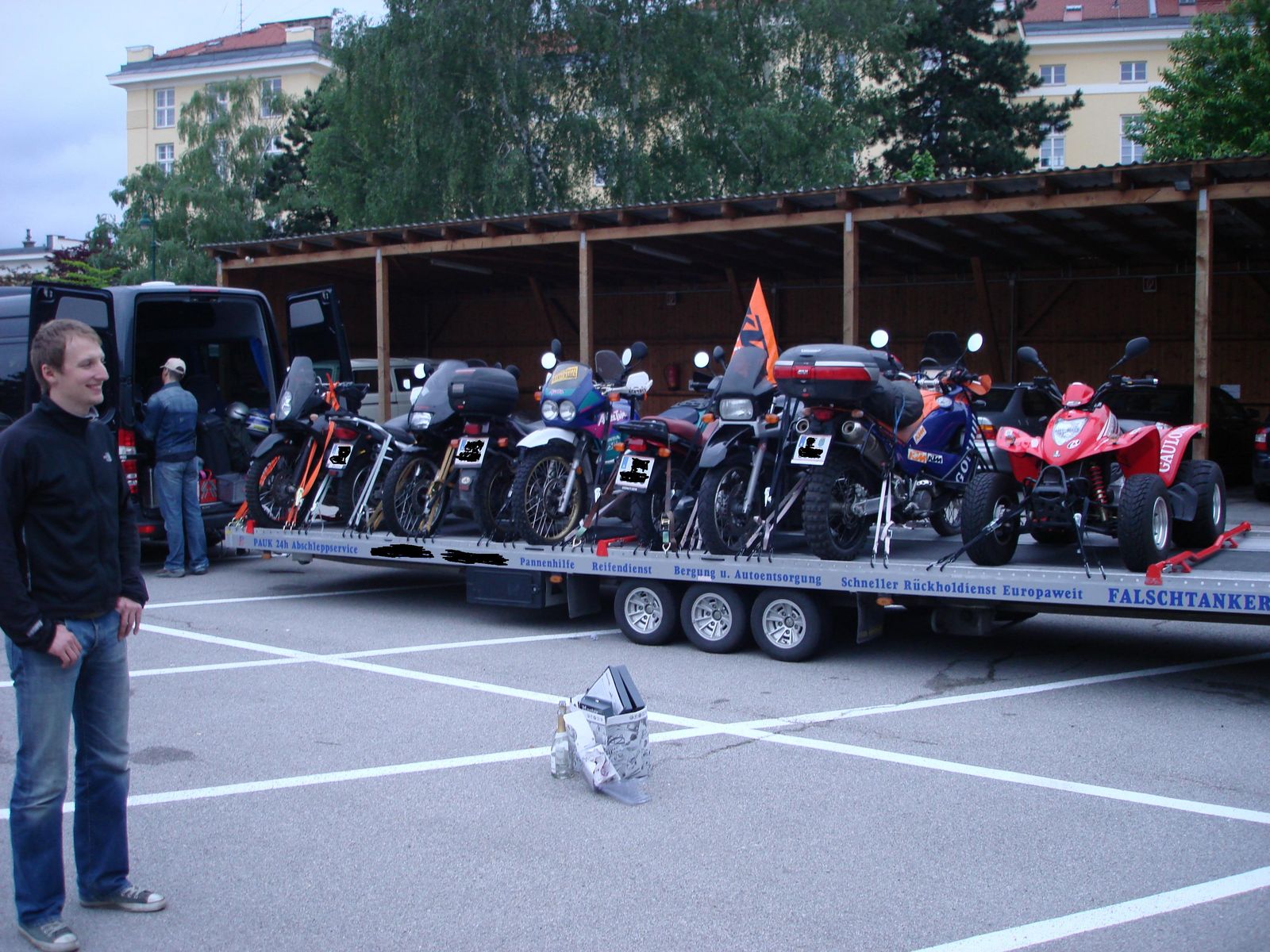 hab mir grad die alten einträge durchgesehen und hab bemerkt, dass ich ja gar keine bilder von unserem anhänger und von unserem zugfahrzeug reingegeben habe. hat alles super funktioniert. genug platz im zugfahrzeug und genug platz am anhänger da hätten sogar noch einige moped platz ghabt !