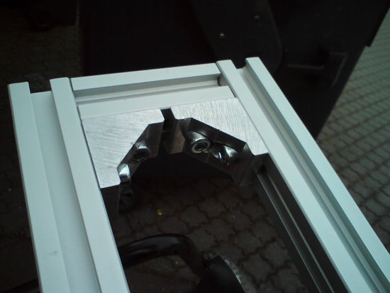 Dann gibt es dafür verschiedene Winkel und Verbinder und die sogenannten Nutsteine die man in der Mitte einschiebt und beliebig festschrauben kann.