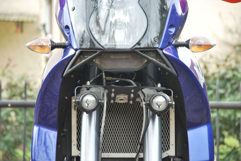 Bei Volleinschlag hab ich leichten Kontakt zwischen dem Lampenhaltebügel und der Innenverkleidung. Ist aber nicht so wild. Könnte man vermeiden indem man die Lampen etwas nach Innen verschiebt (in dem Halter sind Langlöcher dafür vorgesehen), aber mehr zur Mitte bedeutet bei voll eingefederter Gabel möglicherweise Kontakt zwischen Lampen und Schutzblech. Und das sehe ich als kritischer an.