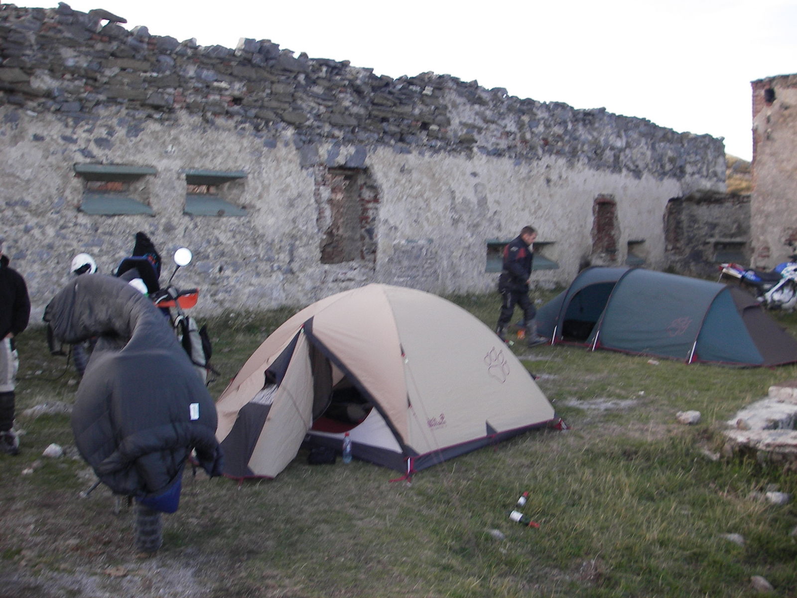 haben das letzte mal direkt im Fort geschlafen. Ist kein Problem das Zelt aufzubauen. Sind zumeist auch noch andere Motorradfahrer da.