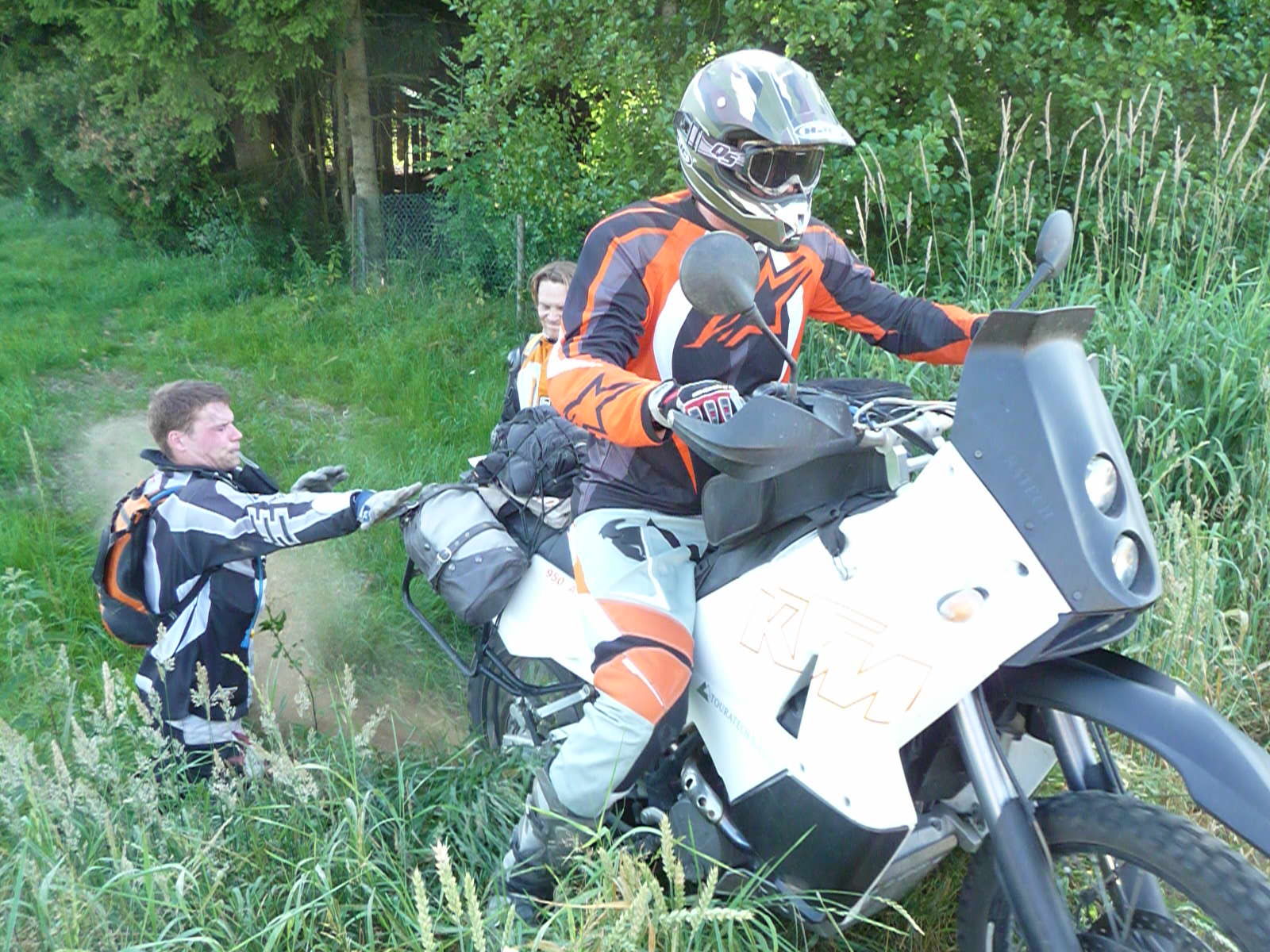Samstag:Morgens wieder Regen und Friedrich kommt mit - über schotterwege - Matze hat nun vorne und hinten kein Profil mehr - im Tempo LC8 - das wäre auf den geammten 1850 km nicht möglich gewesen - Fahrerisch -technich und Nervlich