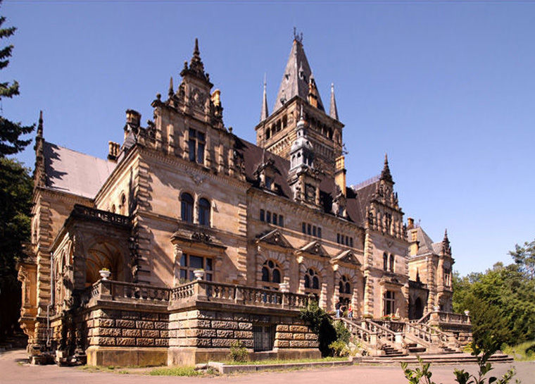 Finde dadruch sieht das Gebäude aus als ob es sich oben auseinander spreizt und unten V Förmig zusammenläuft..