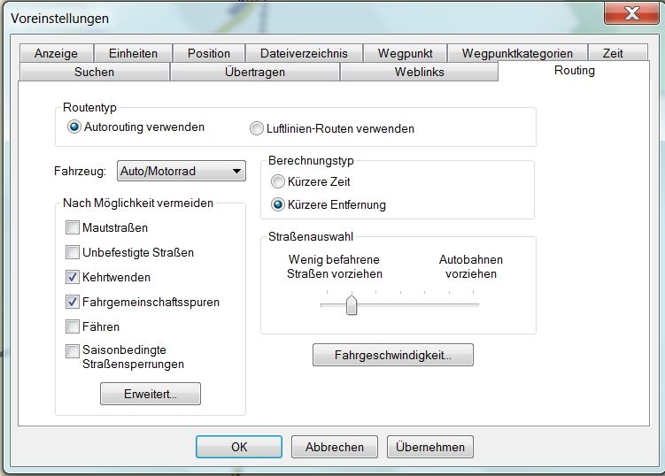Wenn man im Mapsource, in den Voreinstellungen, "wenig befahrene Strassen