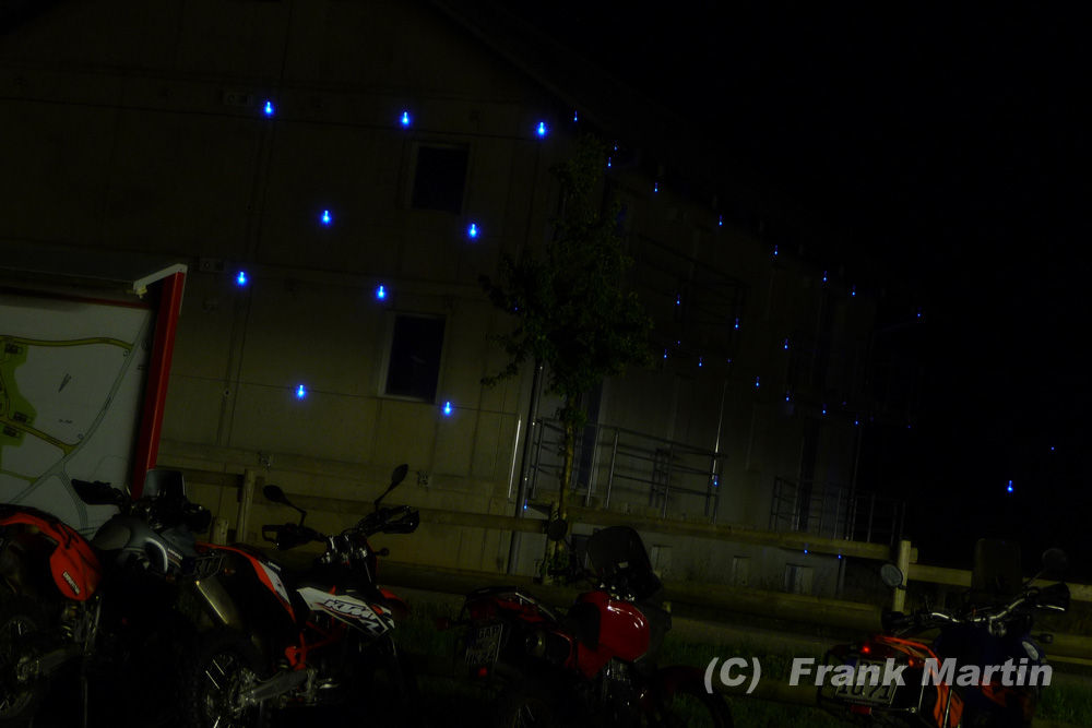 die blauen Lichter und viele Sensoren dienen simulierten Kampfhandlungen - schließlich sind wir auf einem Armeegelände