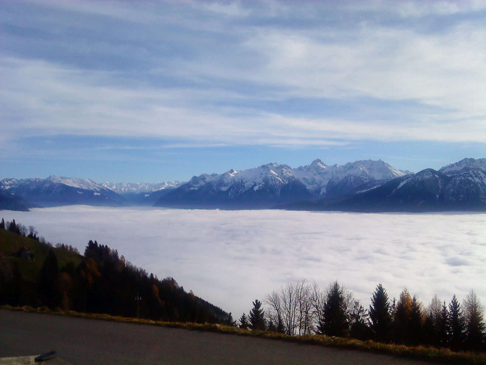 war auch unterwegs im Burgenland, Nebel unterhalb der Burg Forchtenstein, oberhalb stahlender Sonnenschein Very Happy