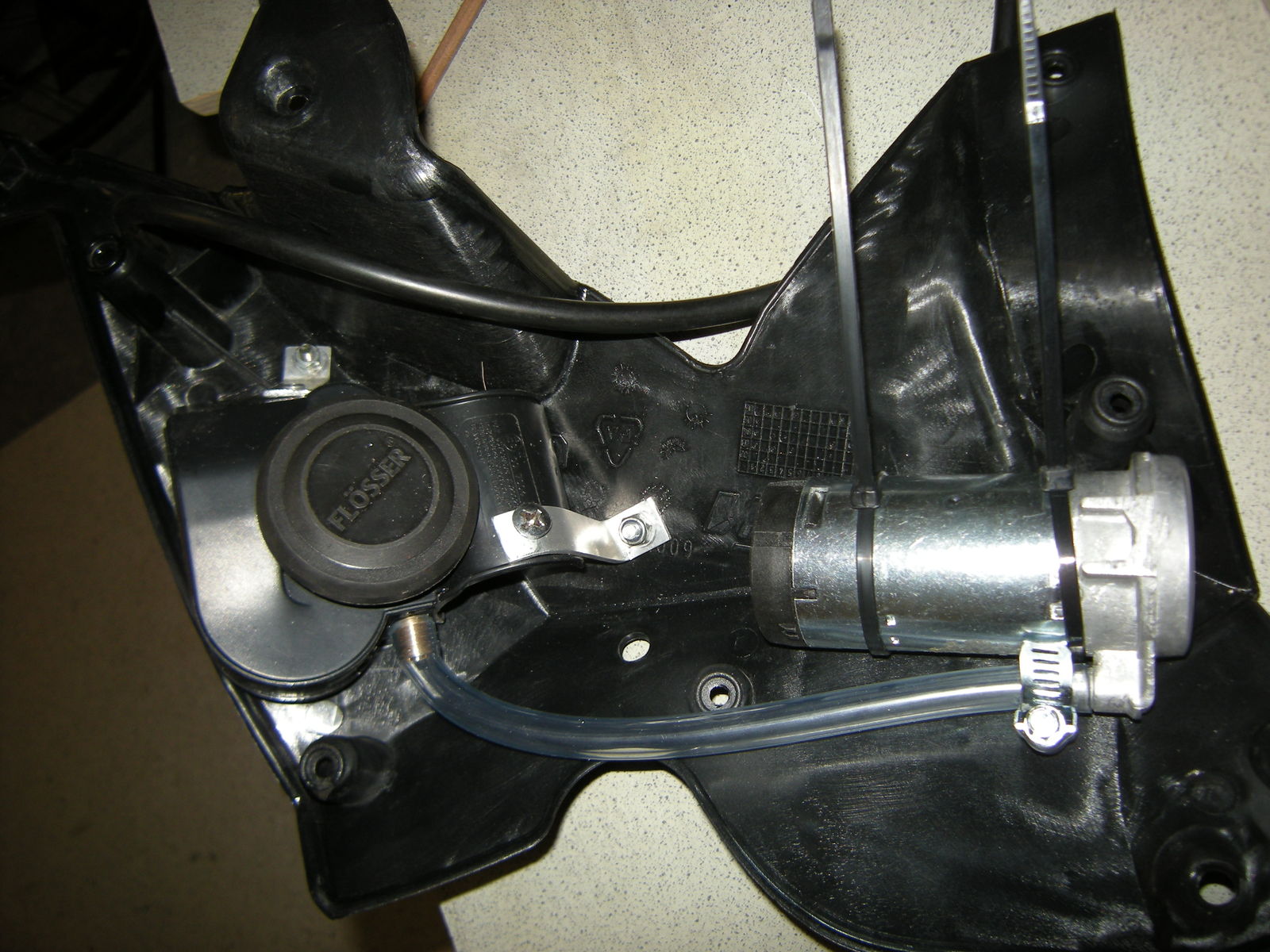 Hab jetzt ein paar Fotos vom Einbau der Hupe in die rechte Hamsterbacke gemacht. Zunächst gilt es die Nautilus auseinander zu nehmen. Ist nur zusammen gesteckt. Großes Problem war das Anbringen eines Schlauchnippels im Resonanzkörper. Hab da so ein Messingteil bei einem Gummischlauchhändler gefunden. Hupe und Nippel mit 10 mm Gewinden versehen und mit Schraubensicherung eingedreht. Den Ausschnitt in der Verkleidung hab ich zunächst mit der Lochsäge und dann mit dem Dremmel vorgenommen. Der Resonanzkörper wurde mit zwei kleinen Aluwinkeln befestigt. Den Kompressor halten 2 Kabelbinder. Um das Pluskabel sicher von der Batterie nach oben zu bringen, werde ich wohl die rechte Tankhälfte abbauen müssen oder weiß irgendwer eine bessere Möglichkeit?